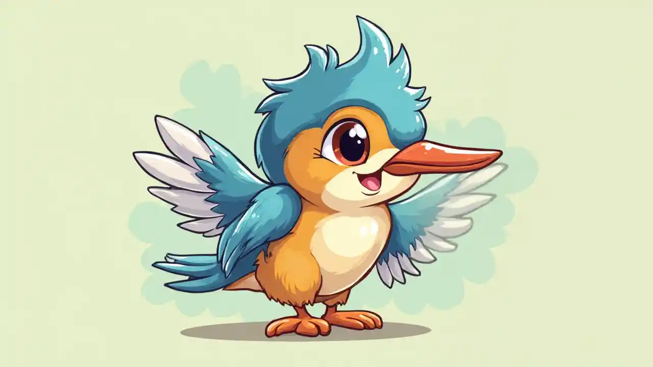 gracelindo, Kingfisher, vista completa, estilo chibi, estilo disney, estilo de dibujos animados, estilo pixar, con fondo