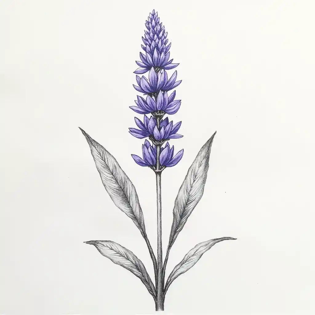 Dibujo de lápiz de flores de lavanda con mancha monocromática