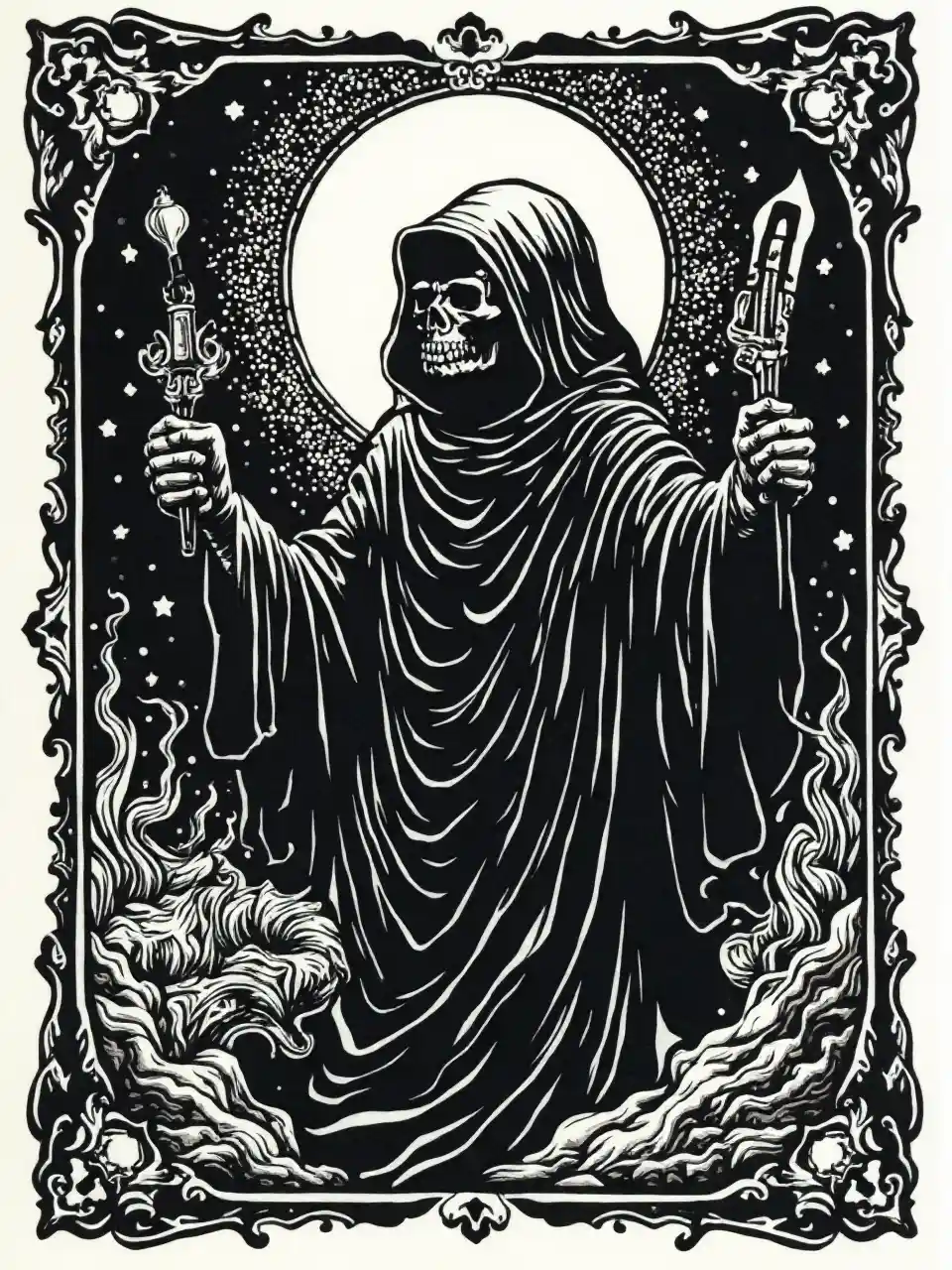 Negro Blanco Linocut Muerte Tarot Estampilla