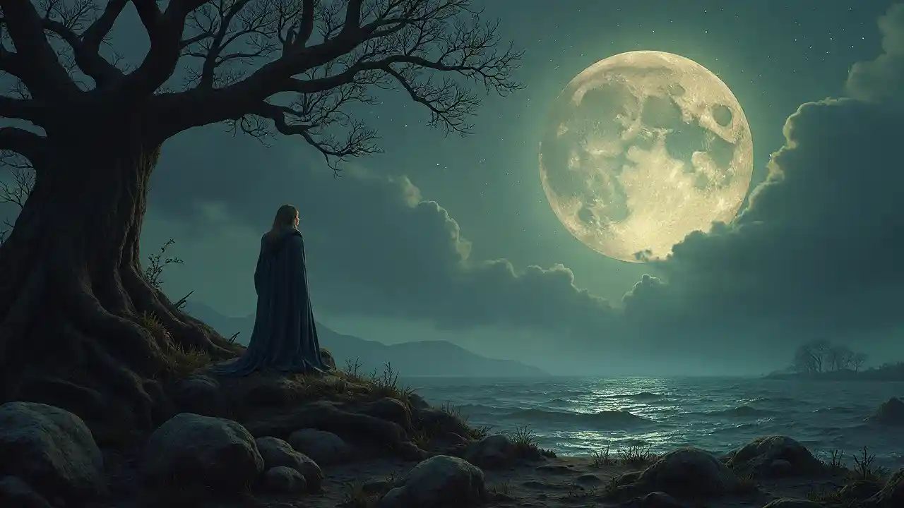 En la tierra del horizonte perdido Donde la reina yace oscura y fría Cuando las estrellas no brillen, entonces la historia será contada
