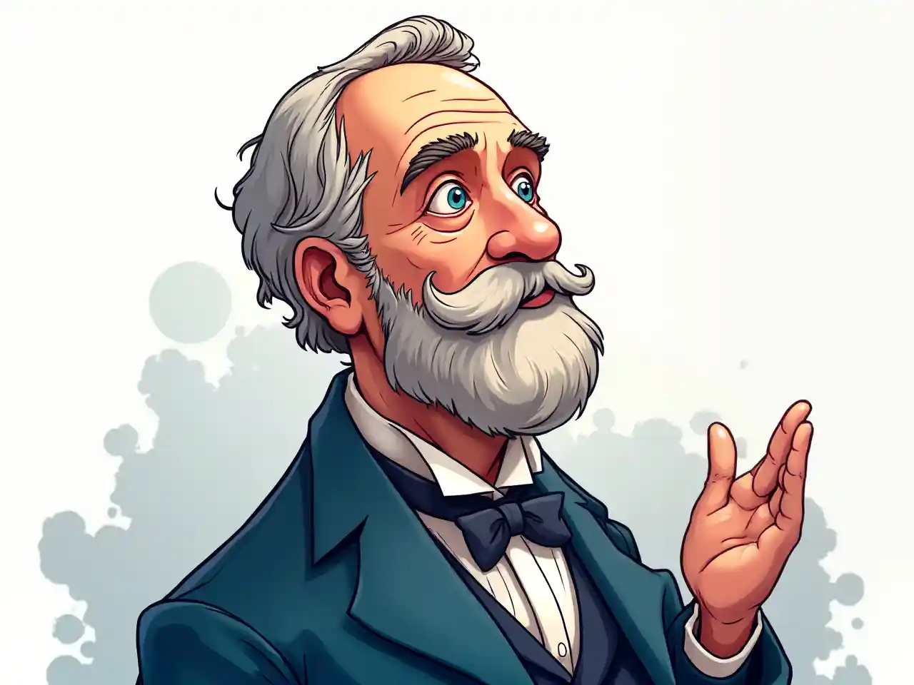 Caricatura de medio cuerpo Retrato de Louis Pasteur, colores brillantes y saturados, altamente detallado, enfoque nítido, Expresivo brillante, Iluminación dramática, Profundidad de campo, Increíblemente alto detallado, sobre un fondo blanco