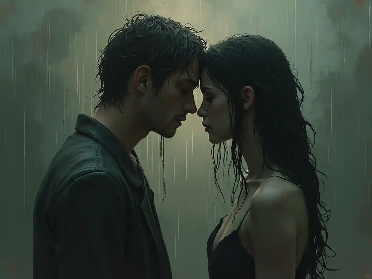 Un fondo de pantalla digital que captura una época en la que el amor alguna vez fue apreciado, con colores apagados y una composición dramática. Esta nostálgica pintura digital evoca un ambiente lluvioso, profundamente profundo emocionalmente, dejando una impresión inquietante e inolvidable en la psique. Detalles intrincados que recuerdan a Milo Manara y Russ Mills, evoca una sensación de anhelo. Las figuras son estilizadas pero abstractas, con un enfoque en la expresión sobre la precisión anatómica, creando una calidad surrealista y onírica. La obra de arte irradia una sensación de belleza agridulce, capturando la esencia del afecto y la memoria del pasado.