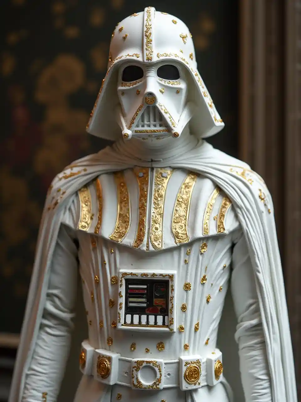 Darth Vader blanco de lujo, decorado con oro, materiales tallados, Dolce y Gabbana