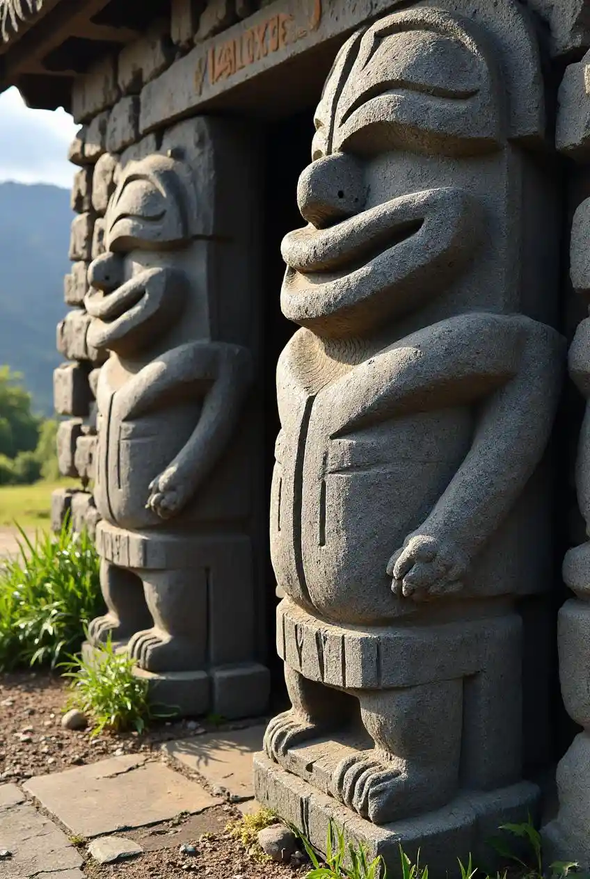 Marae maorí en Nueva Zelanda, tallas que guardan la tradición antigua.