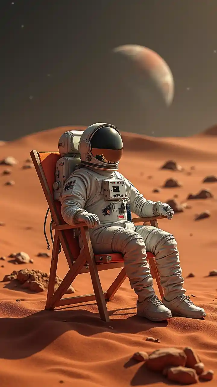 Astronauta se relaja en Marte en una silla de playa