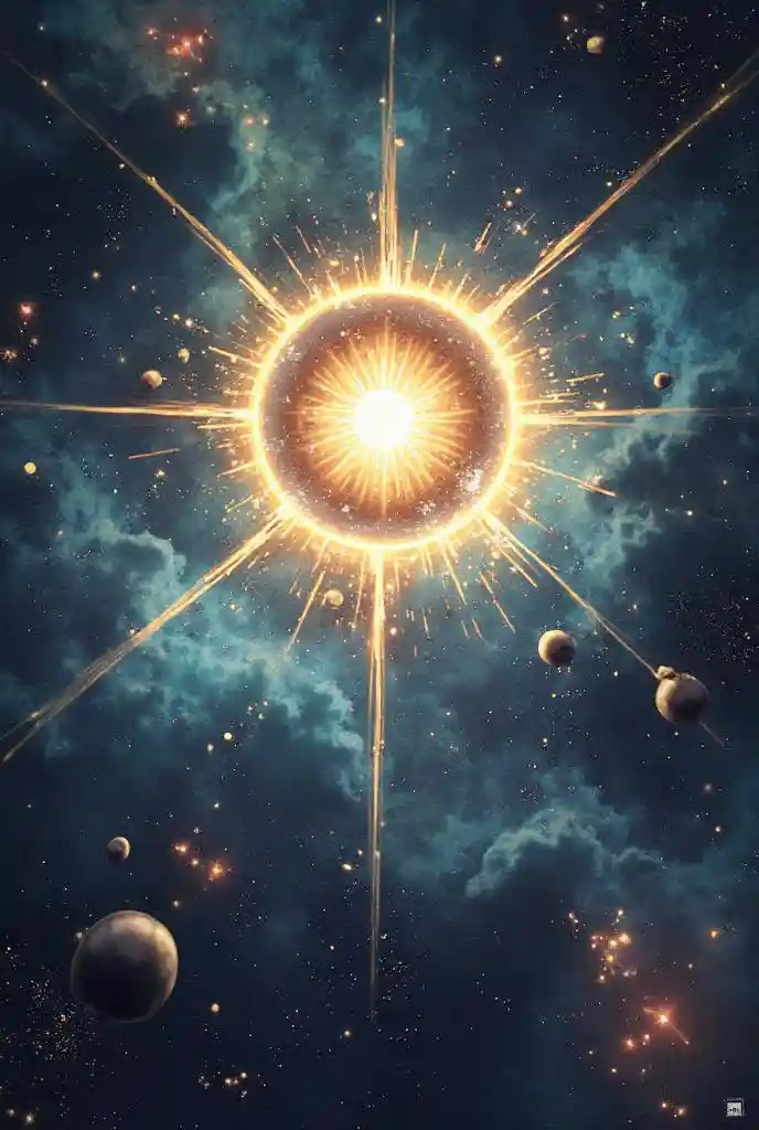 Micro Mundo, Es un átomo, electrónica, neutrones, como un pequeño universo, como un planeta donde una estrella brillante gira。tiene Miroku Bosatsu en el centro, ¿Qué hace Miroku