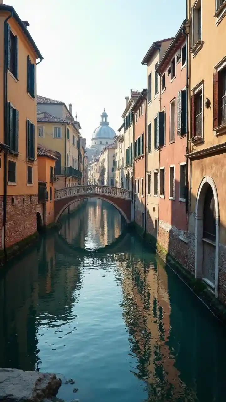 laaaaraRenassaince edificios italianos junto a un río con agua se encuentra en la mañana en Saturno.