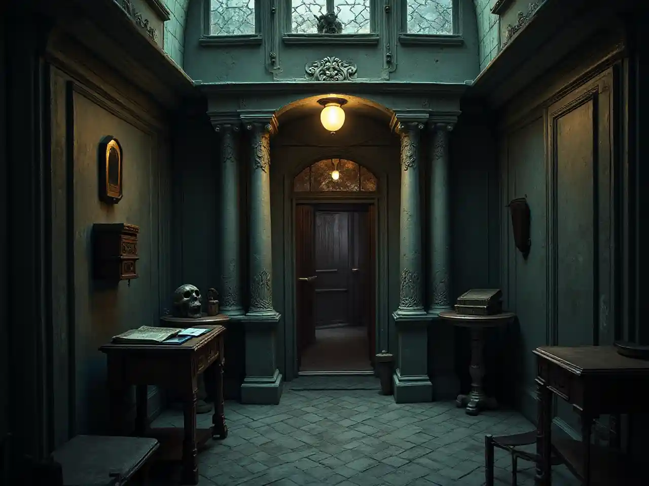 Explore los inquietantes pasillos del "Murder Hotel" de Holmes, con sus intrincadas trampas y pasillos poco iluminados, mientras descubre los secretos de su escalofriante arquitectura.