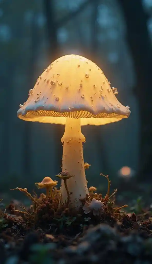 Arte de anime translúcido resplandeciente de hongos