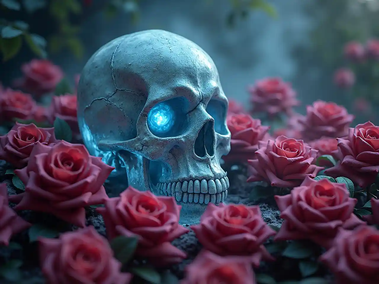 Un vistazo a un mundo místico de calaveras de cristal y rosas encantadas
