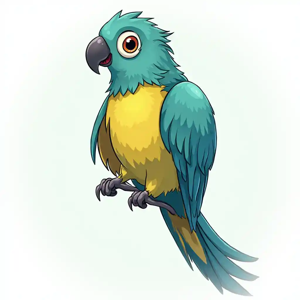EvelynFondo transparente de dibujos animados de loros azul, verde y amarillo