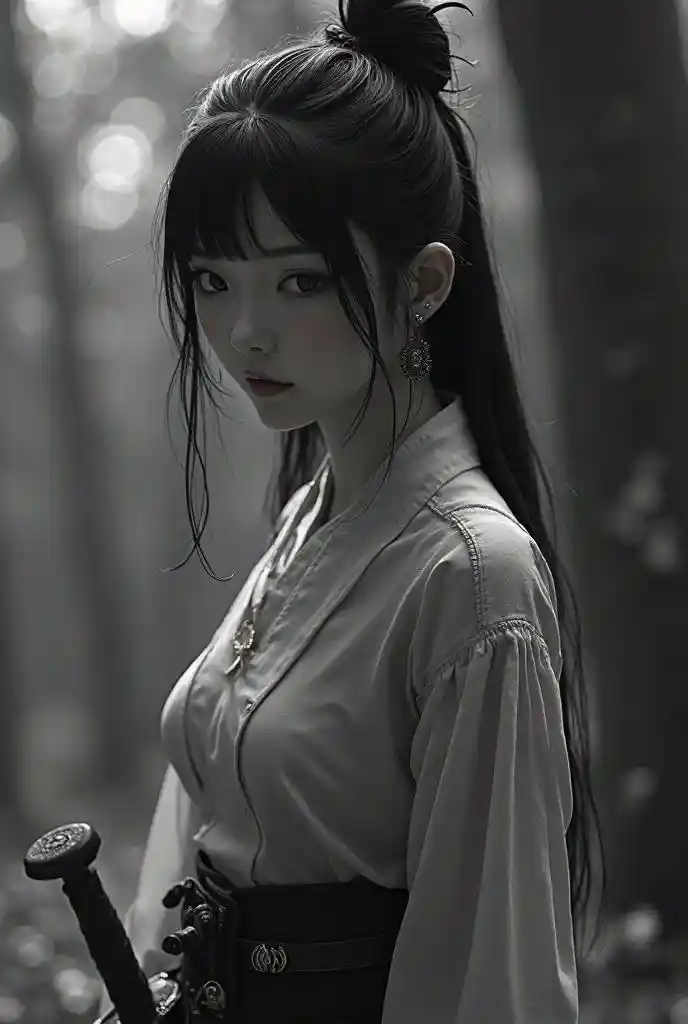 FINNN((Fotografía en blanco y negro: 1.2)), ((((Arma de espada: 12)), (alta resolución: 1.2), 8K Ultra HD, D, alta resolución, 4K, 8k, Profundidad de bokeh, (hembra: 1.2),
