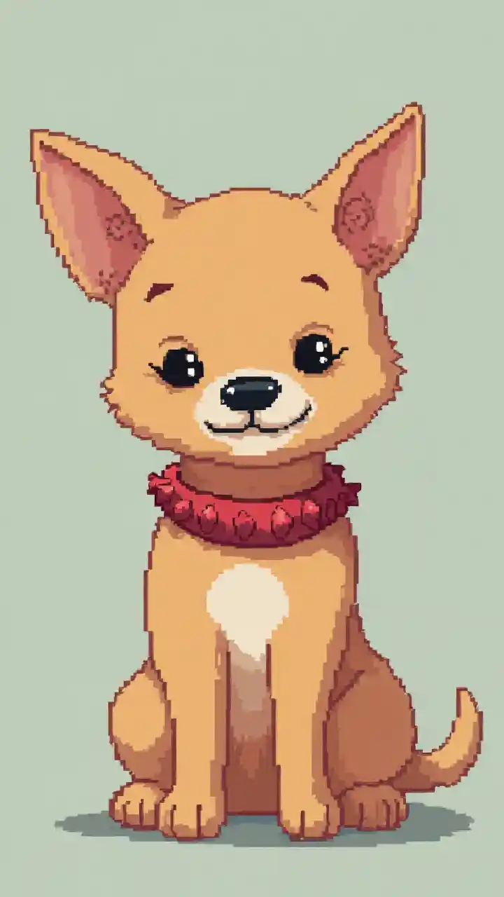 Perro simple de dibujos animados de 24x24 píxeles con collar rojo