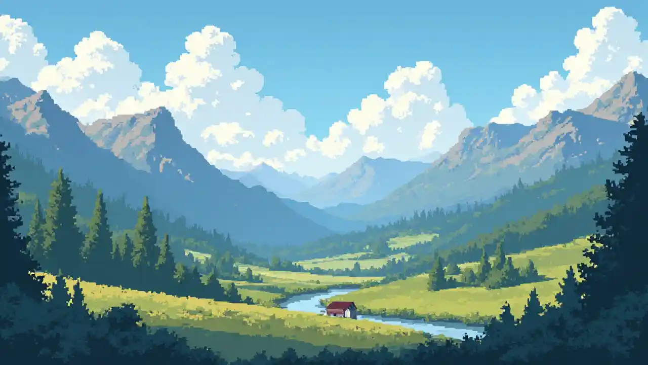 LilyLandscape, pixel art, big pixels, square pixels, vector