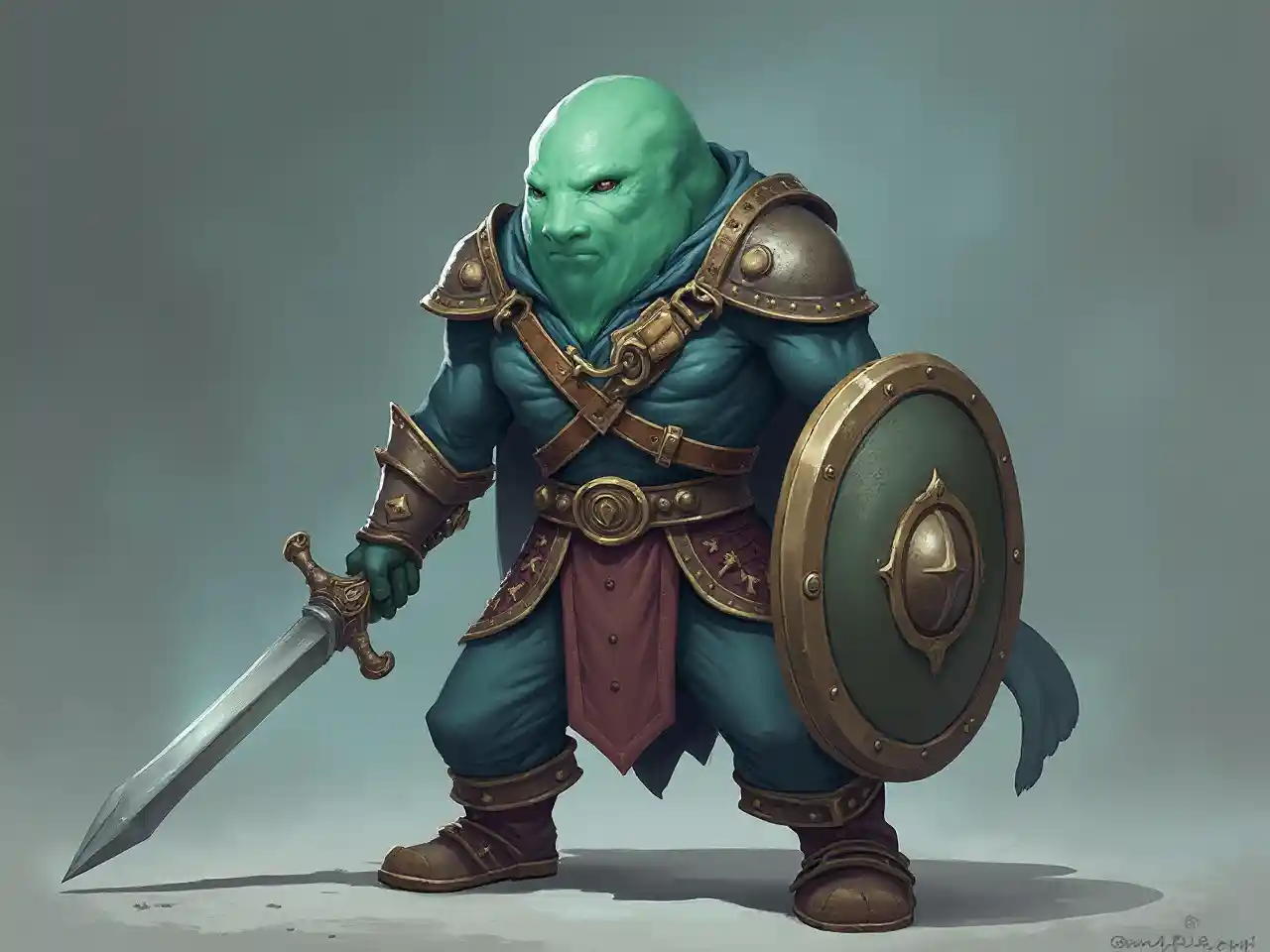 Personaje de Plasmoid slime dnd → Agregar una espada larga plateada y un escudo → Tamaño mediano → Sostener una espada larga → No cubrirse la cara → Más varonil