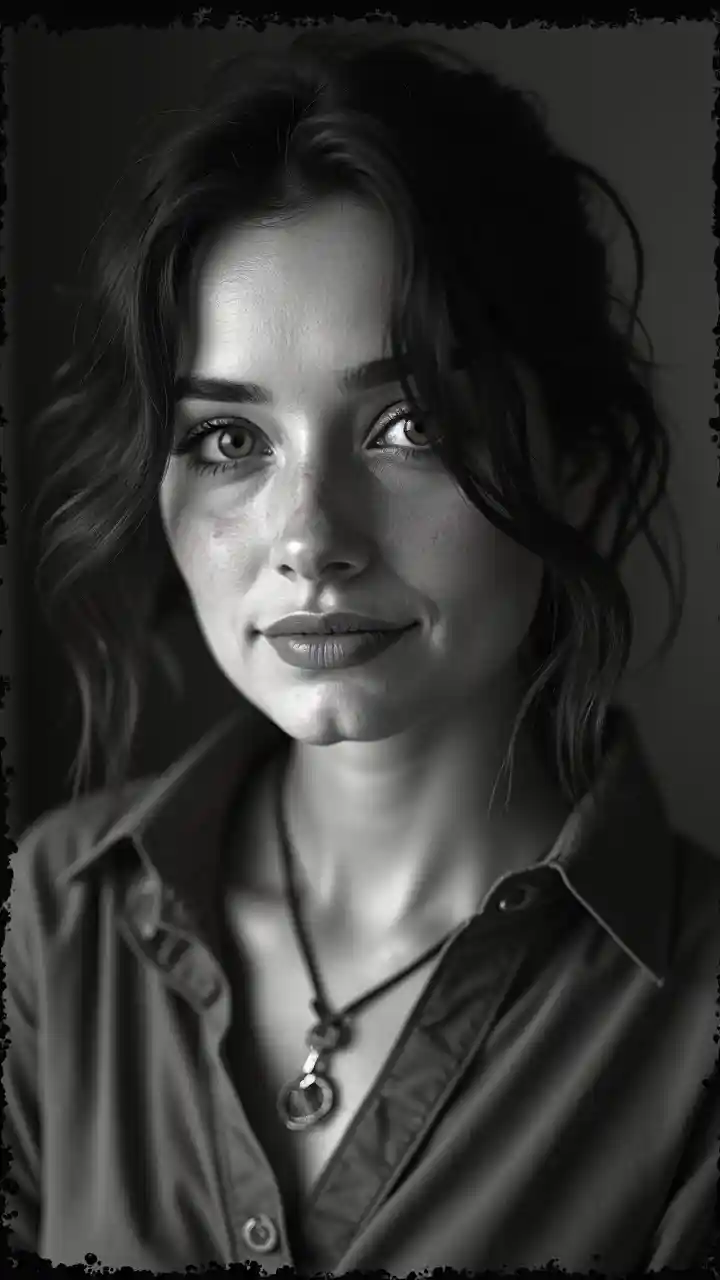 una fotografía de placa húmeda de una mujer con emociones neutrales en su cara. retrato de una hermosa mujer. detallada, sincera, acogedora, dulce, mujer joven, europea, fotografía, captura, luz, iluminación suave, iluminación de contraste suave, poca profundidad de campo, grises graduados, película Kodak Tri-x 400, viñeta oscura