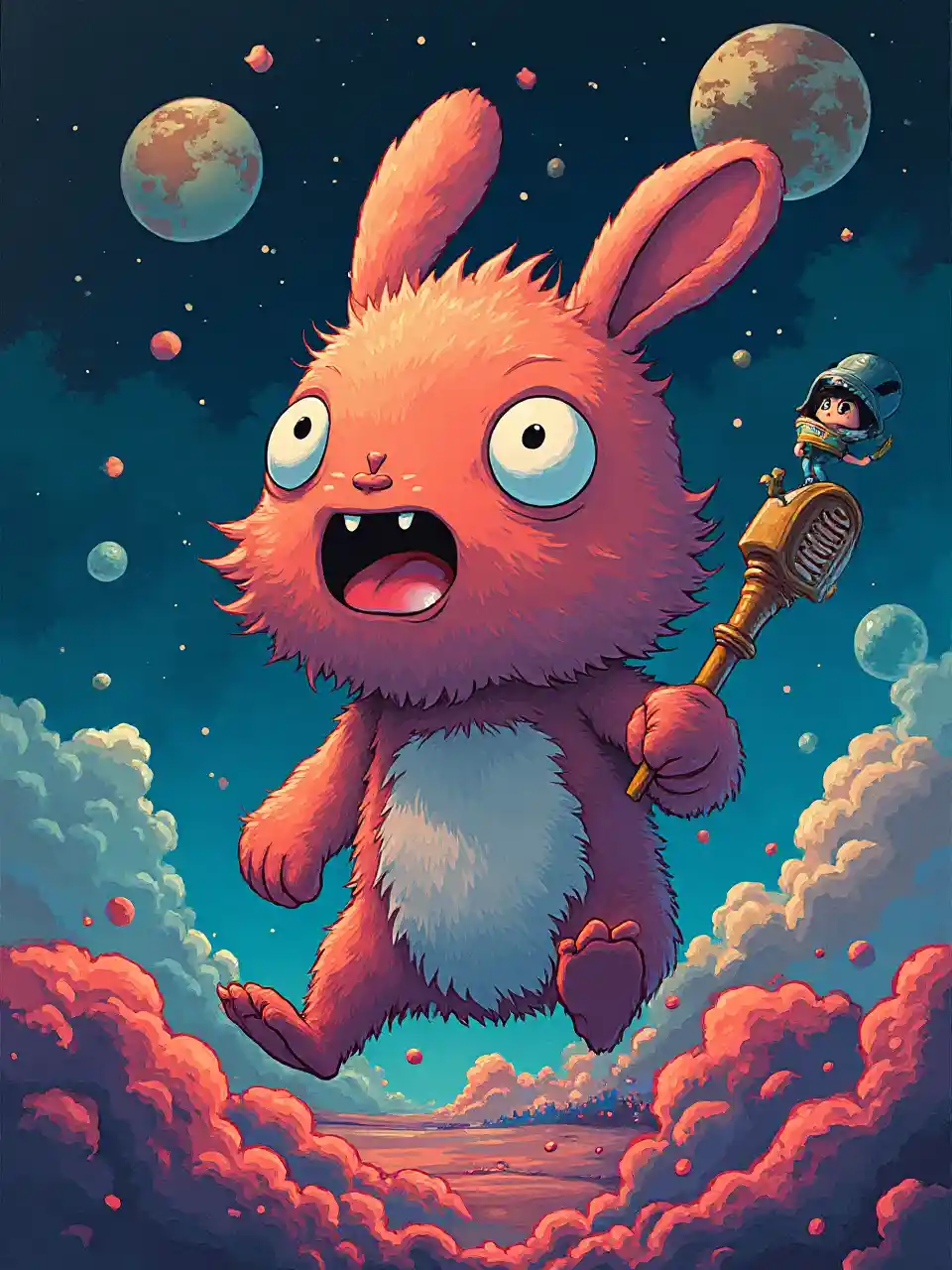 Monstruo de conejo en el arte espacial inspirado en Ghibli y Genshin