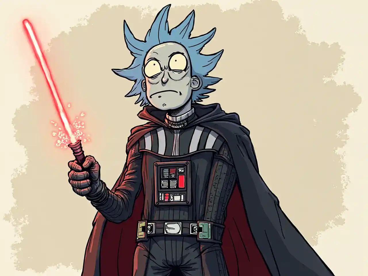 MwangDibujo de Rick Sanchez, al estilo de Rick and Morty, caracterizado como Darth Vader