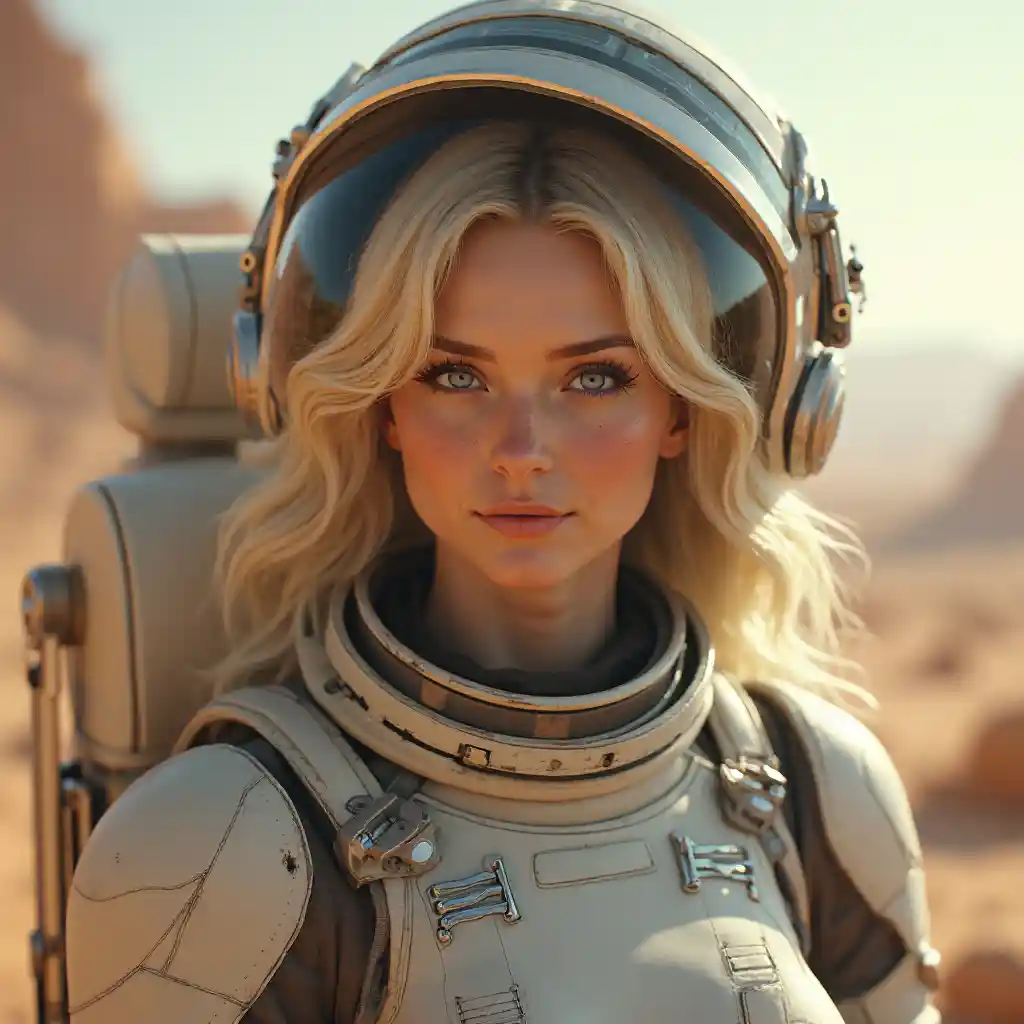 Mujer rusa, casco con escudo de vidrio transparente, traje espacial, cabello rubio, cara bonita, cara de alto detalle, ojos de alto detalle, disfraz de alto detalle, telón de fondo de Marte, obra maestra, mejor calidad, alto detalle, realista, calidad fotográfica, alta calidad, (fotorrealista: 1.4) muslos gruesos, senos desnudos completos