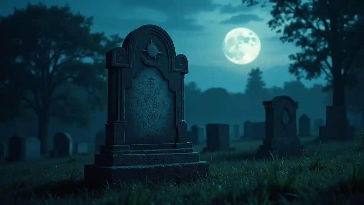 Lápida iluminada por la luna en el misterioso cementerio de Kalunga