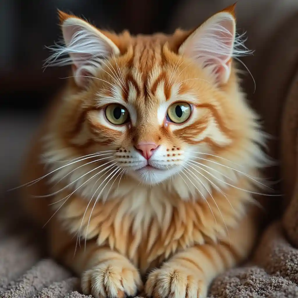 un gato orange, un escocés recto, ojos amarillos y una cara linda, necesitas una cubierta cómoda con el nombre Sima