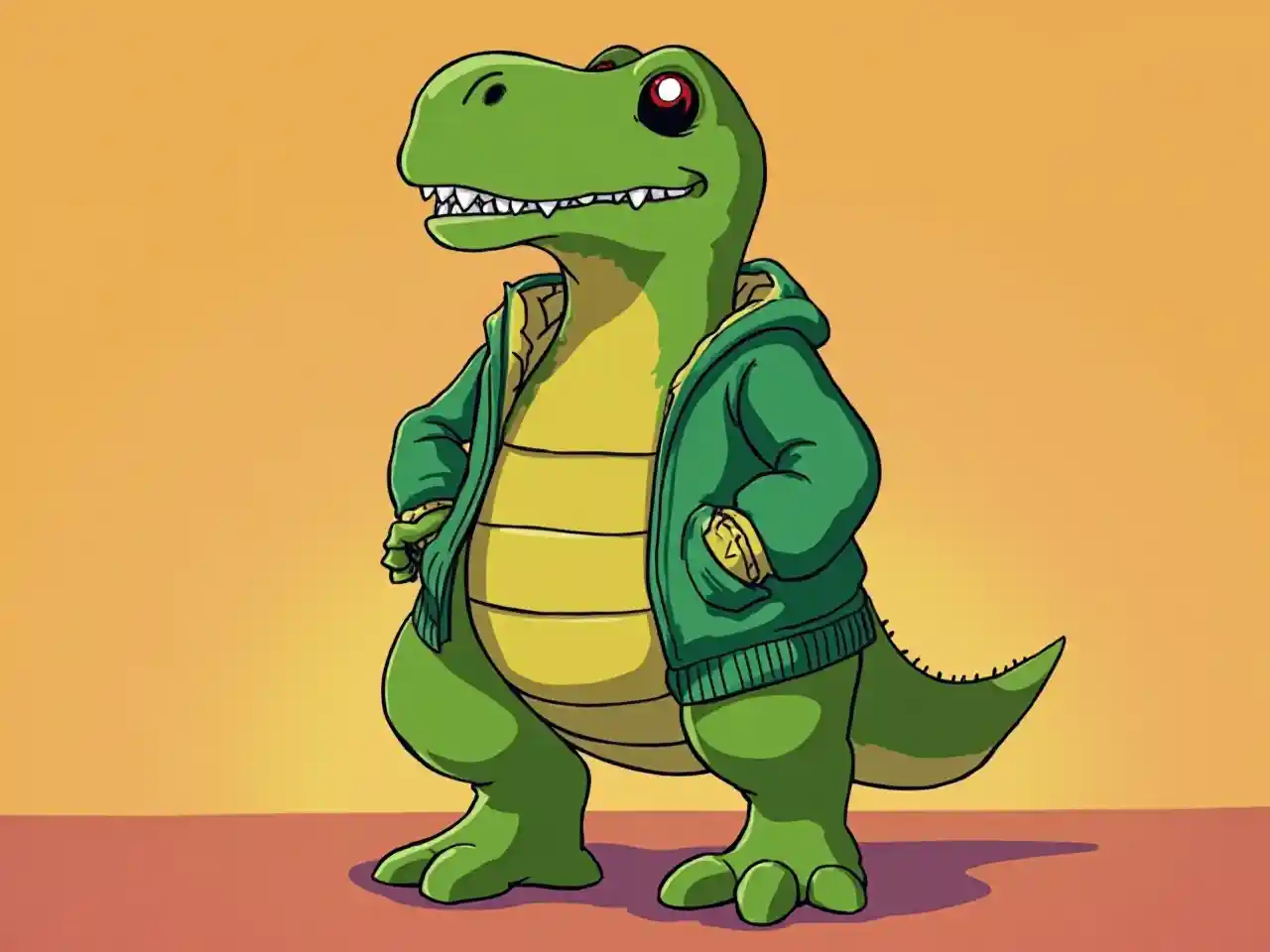 T-Rex al estilo de Los Simpsons con chaqueta verde