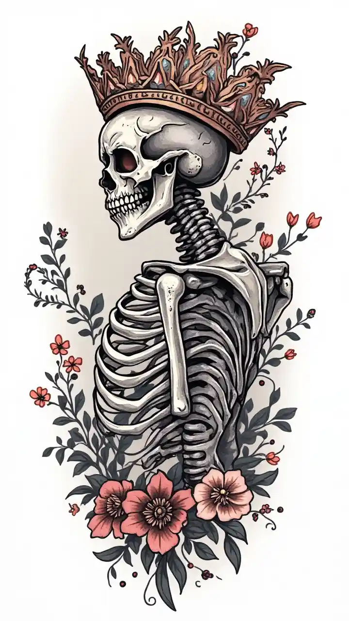 BettyUn arte vectorial de un tatuaje de esqueleto de reina, fondo blanco