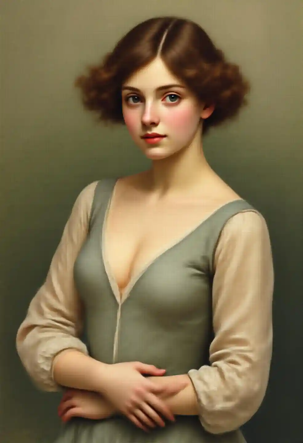 BraydenA breathtaking, hyperrealistic painting in the style of Art Nouveau and Romantic Impressionism. A young woman, appearing to be of Slavic descent, aged between