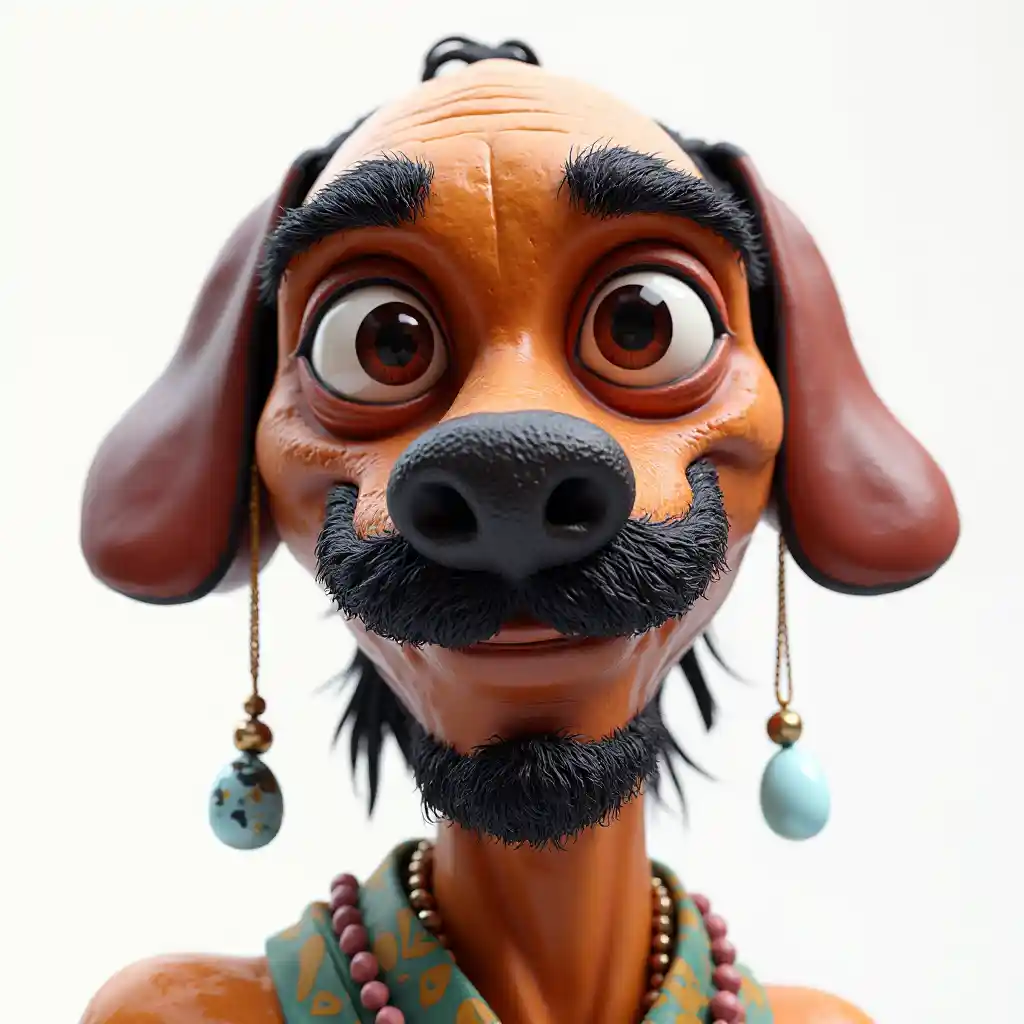 Un vívido render 3D de alta resolución de Snoop Dogg con un estilo inspirado en Pixar y Disney, con una piel bellamente texturizada y ojos expresivos y detallados. El render muestra una interpretación juguetona y caprichosa, capturando la personalidad relajada y carismática de Snoop Dogg. Sobre un fondo blanco nítido, la imagen recuerda a una textura de cerámica vidriada, rebosante de colores vibrantes y detalles intrincados. El estilo combina elementos de realismo y fantasía, lo que resulta en una experiencia visual cautivadora y encantadora que se siente a la vez familiar y mágica, presentada en una impresionante resolución de 8k.