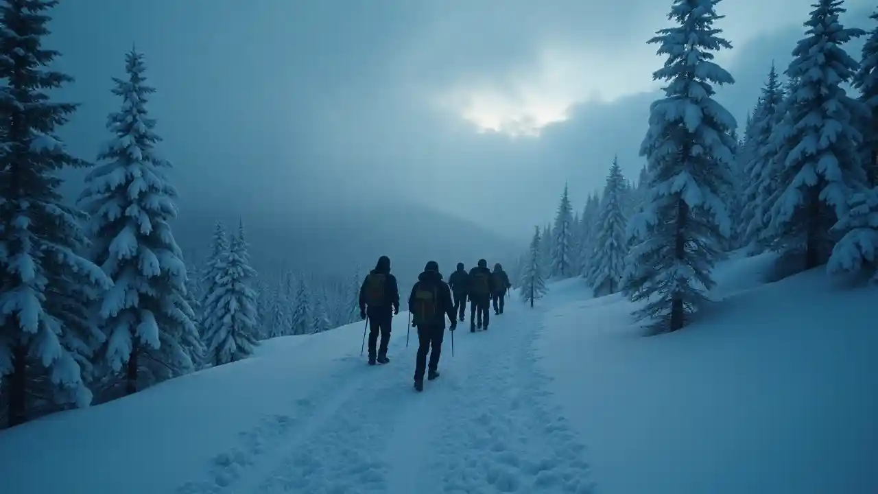 Imágenes oscuras y nevadas. Misteriosa música. En las heladas montañas de Rusia, nueve excursionistas emprenden un viaje
