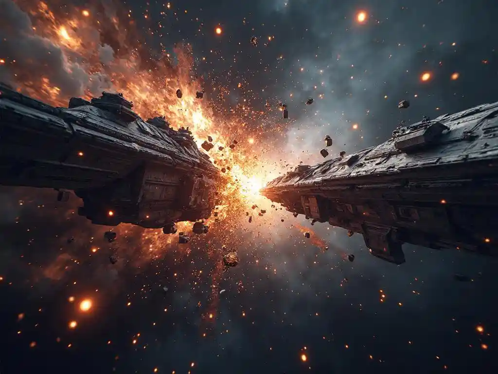 Las naves chocan entre sí destruyendo innumerables fragmentos