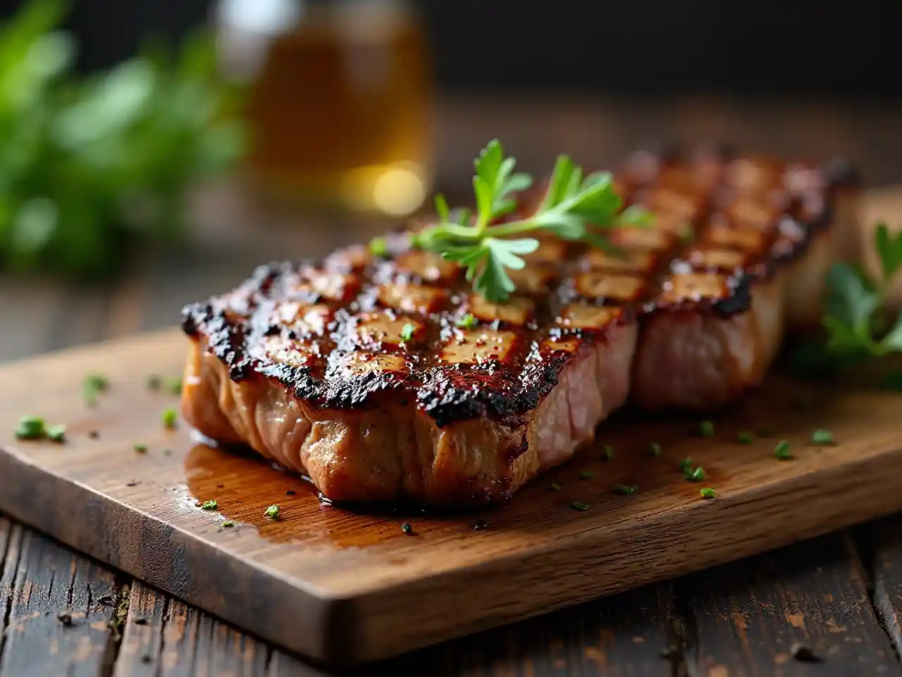 Primer plano de bistec T-Bone a la parrilla Foto de comida