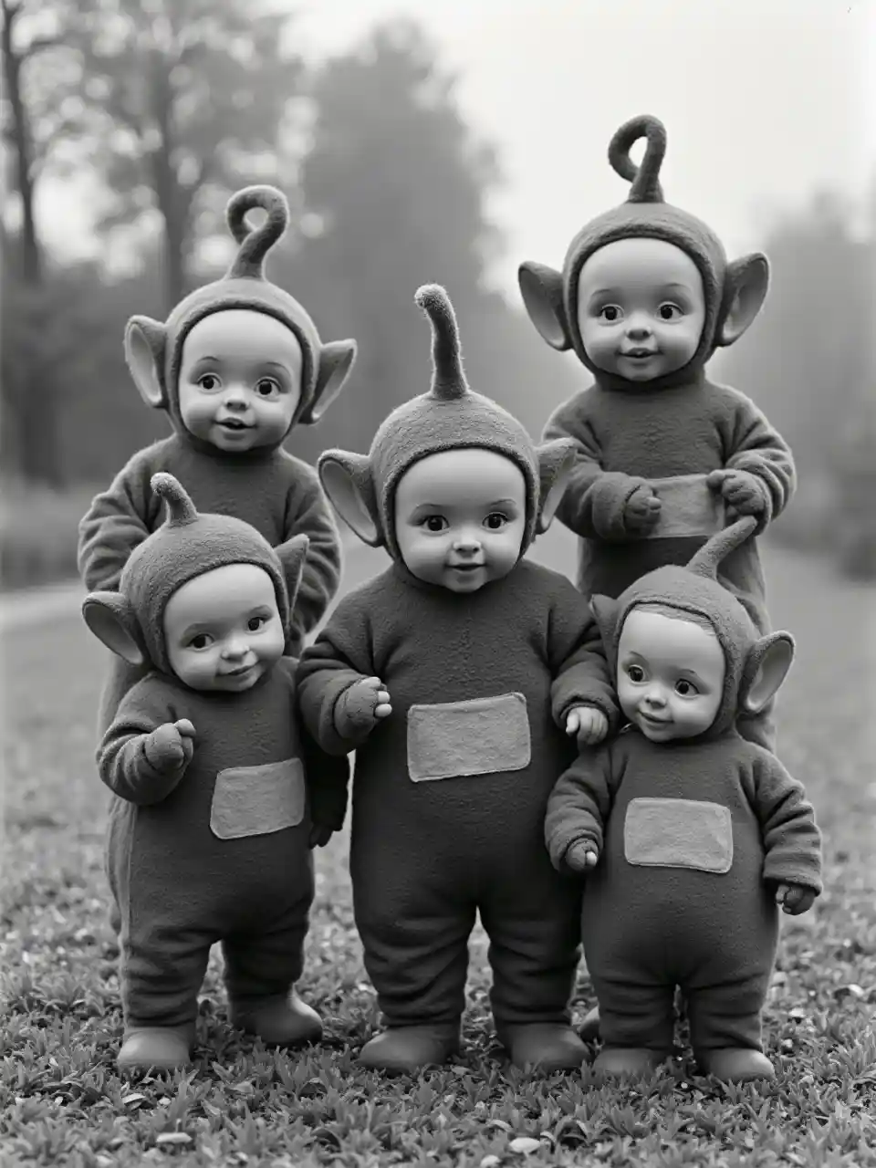 Una foto vintage en blanco y negro de Teletubbies