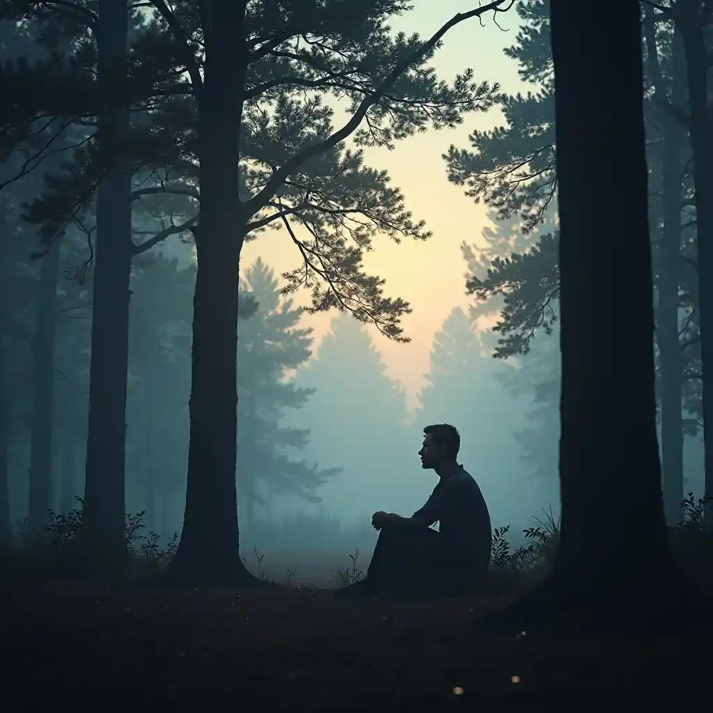 Imagina una escena serena en la naturaleza, donde la quietud de un bosque tranquilo es capturada en el crepúsculo. Imagine la silueta de los árboles altos contra un cielo suave y oscuro, con el suave susurro de las hojas, el único sonido que resuena en el bosque. En medio de este entorno pacífico, visualice una figura sentada en tranquila contemplación, su postura reflexiva y serena. A medida que el mundo a su alrededor se asienta en silencio, deje que las imágenes transmitan la profunda verdad de las palabras de Rumi: "Cuanto más tranquilo te vuelves, más capaz eres de escuchar" Trae a la vida la esencia de la quietud interior y el poder de escuchar dentro de esta imagen cautivadora.