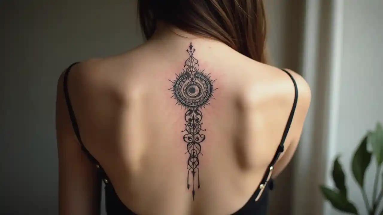 Elegante diseño de tatuaje tribal que fluye por la espalda