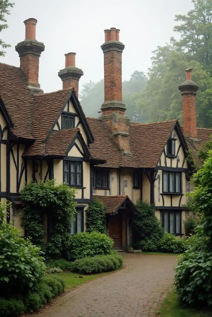 Casas Tudor con chimeneas en Inglaterra