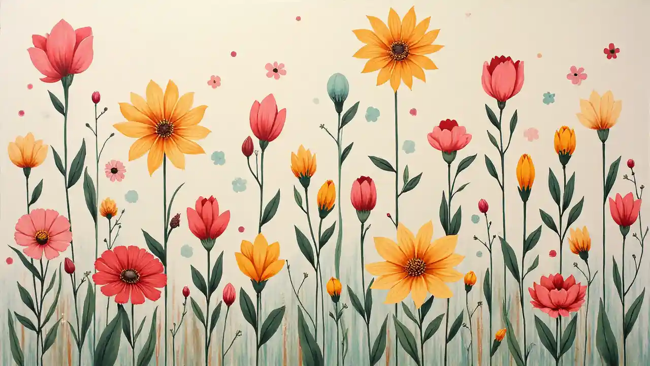 Pinte arreglos florales de estilo retro con flores audaces y patrones caprichosos en colores claros de inspiración vintage, agregando un toque de encanto retro a cualquier habitación