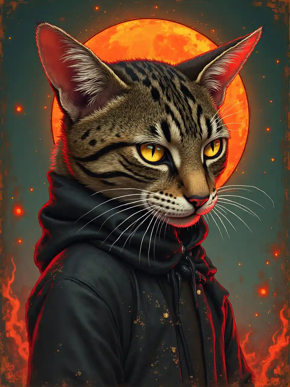 انسان با سر گربه در سبک هنری الهام از ژان پل گوتیر و جهنم دانته