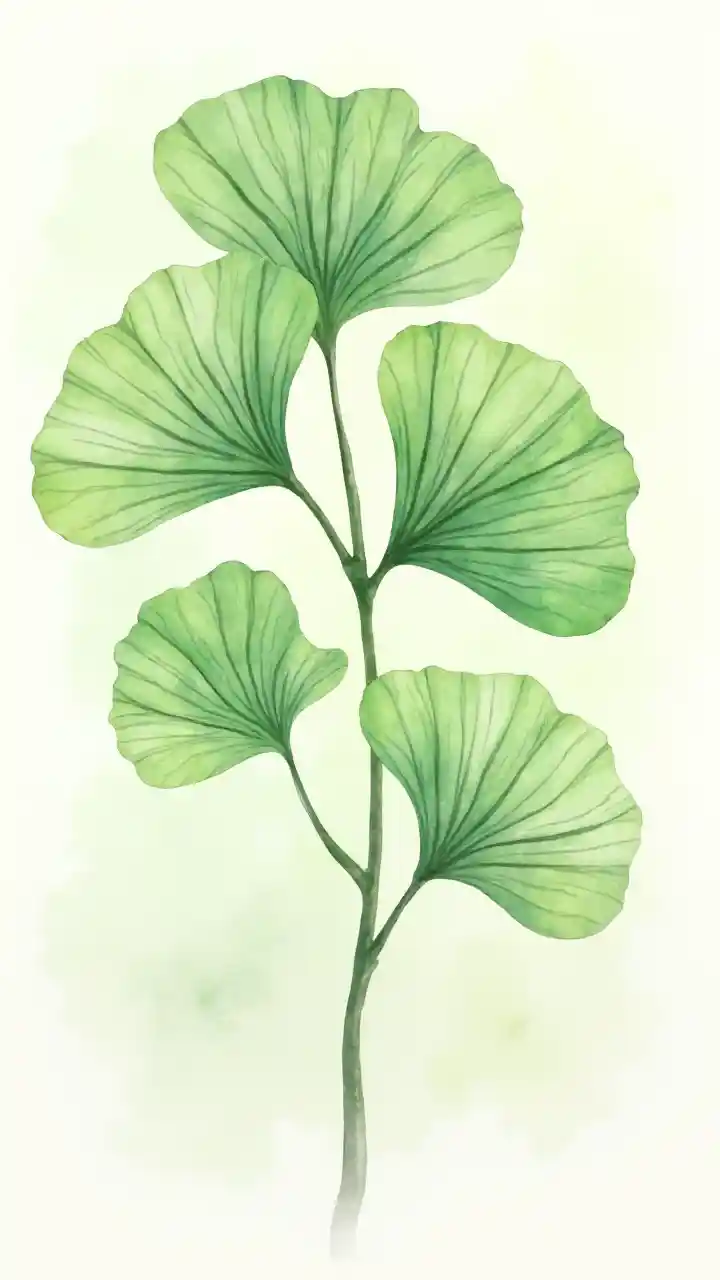 KinsleyGinko biloba leaves, large, fresh, watercolor