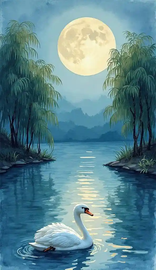 نقاشی دستی در دریاچه سوان رنگ آمیزی سبک کتاب