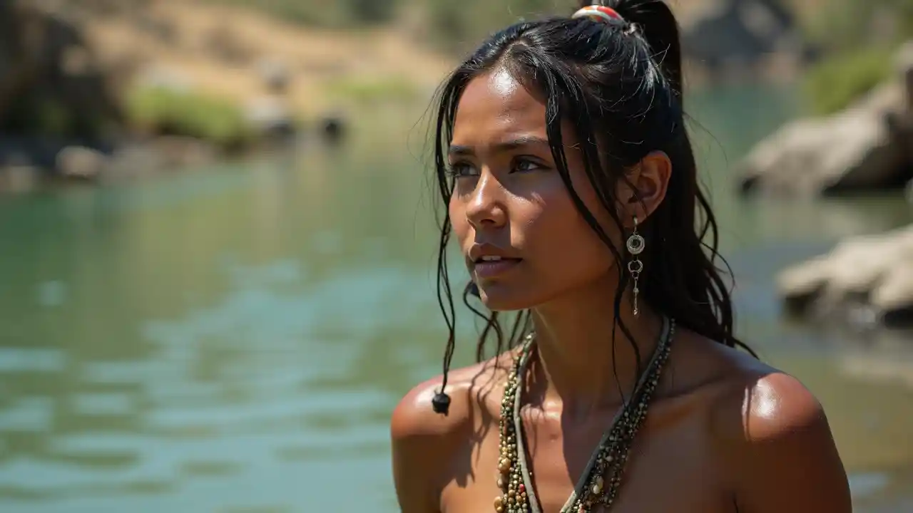 زن زيباي بوميان آمريکا در سبک آب