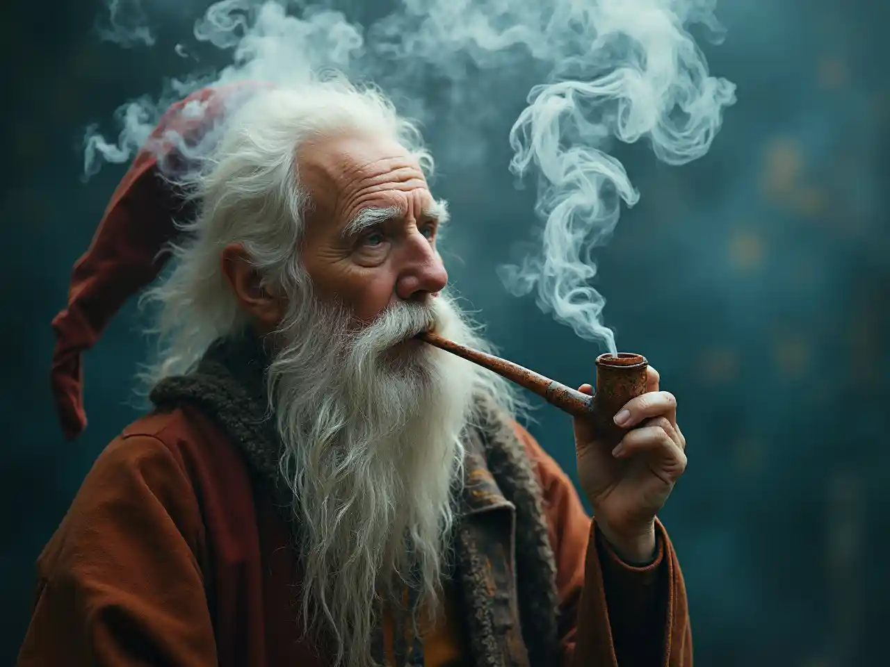 جادوگر پيري که يه لوله بزرگ رو مي کشه با يه اب غريبه از روي اون