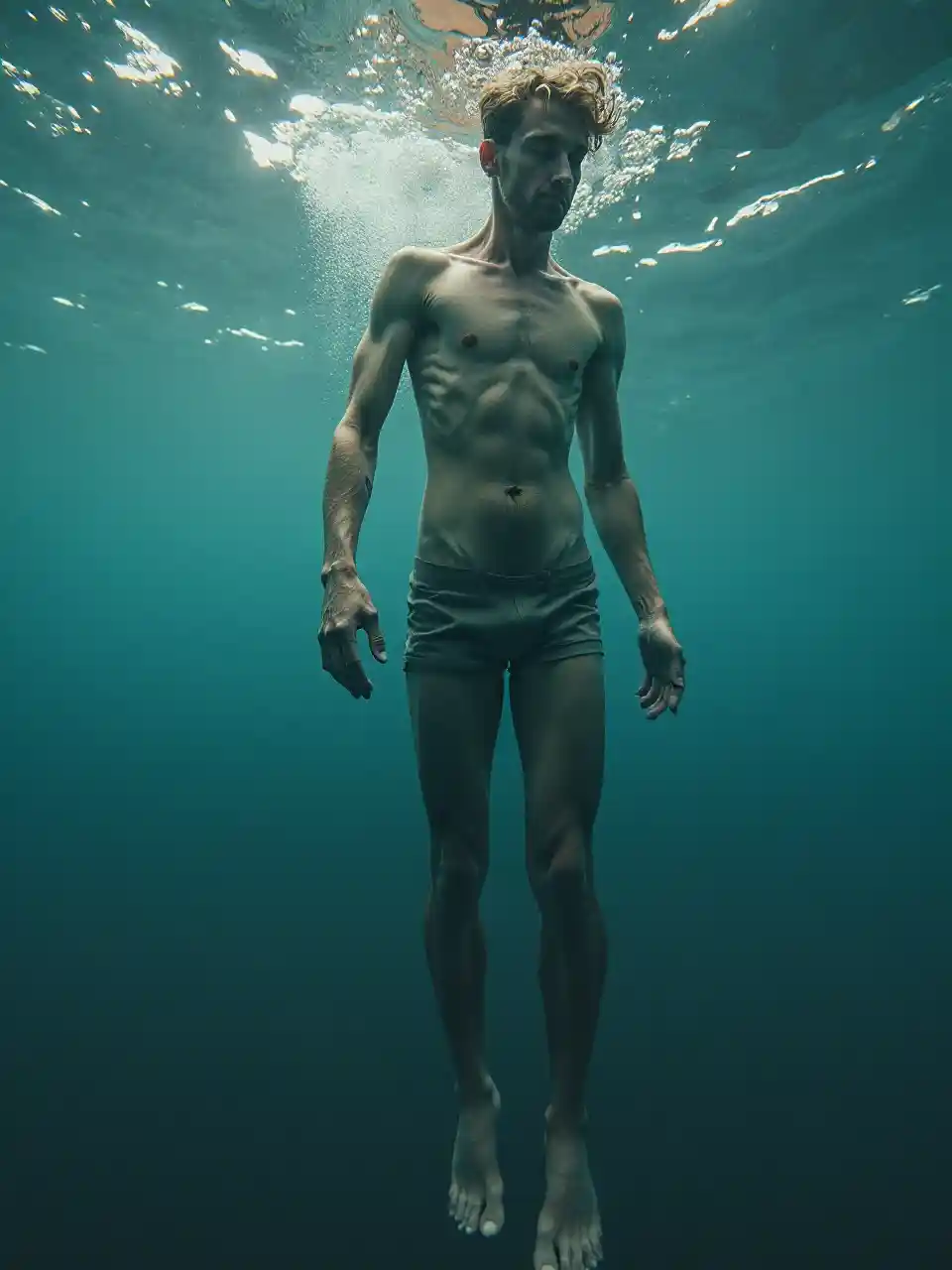 vedenalainen, valokuvaus, realistinen, valokuvausrealistinen, 8k, erittäin yksityiskohtainen, täyden pituinen kuva, RAW-väri, levittävä pehmeä valaistus, matala laajuus, terävä fokus, hyperrealismi, elokuvavalaistus, CGI, 3D, pehmeä fokus, tekstiilimat, leikattu kuva, matala resoluutio, jpeg-artefaatit, hiljaiset värit, ylivalvotut, epäsopivat suhteet, epämääräiset muodot, hämärät elementit, puuttuvat ominaisuudet, epäsopivinen koostumus, toistetut elementit, vääristynyt anatomia, vääristyneet kasvot, lisäykset, vääristyneet figurat, ylitynyt alue, epäjojo, joka on omansa, joka on omansa, joka on omansa, joka on omansa, joka on omansa, joka on oma.
