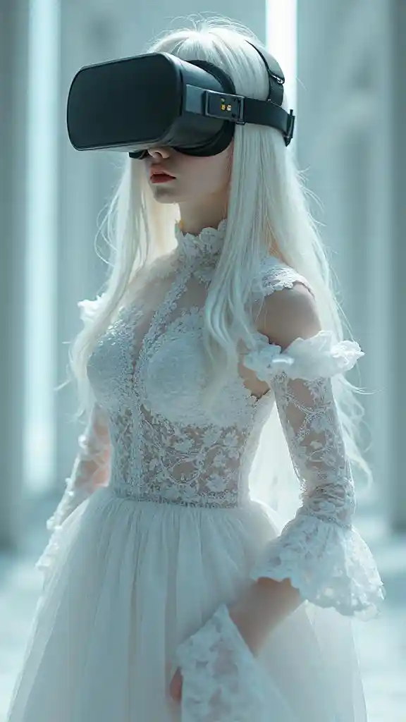 AdalynTulevaisuuden maailma, Cyberpunk, ultra-realistinen, puhdas valkoinen goottinen puhelin