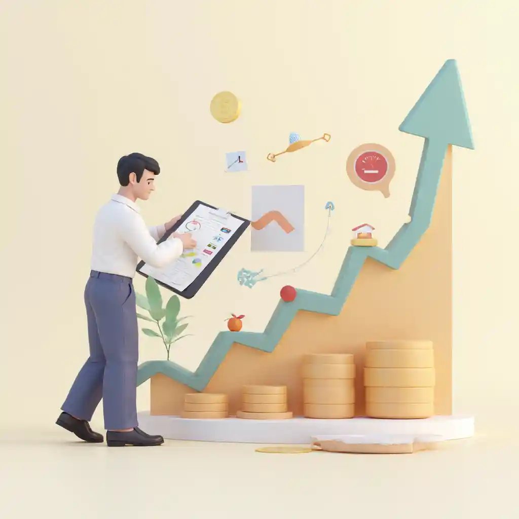 Yrityksen talousjohtaminen, suunnitelma ja strategio. 3D-lähetys