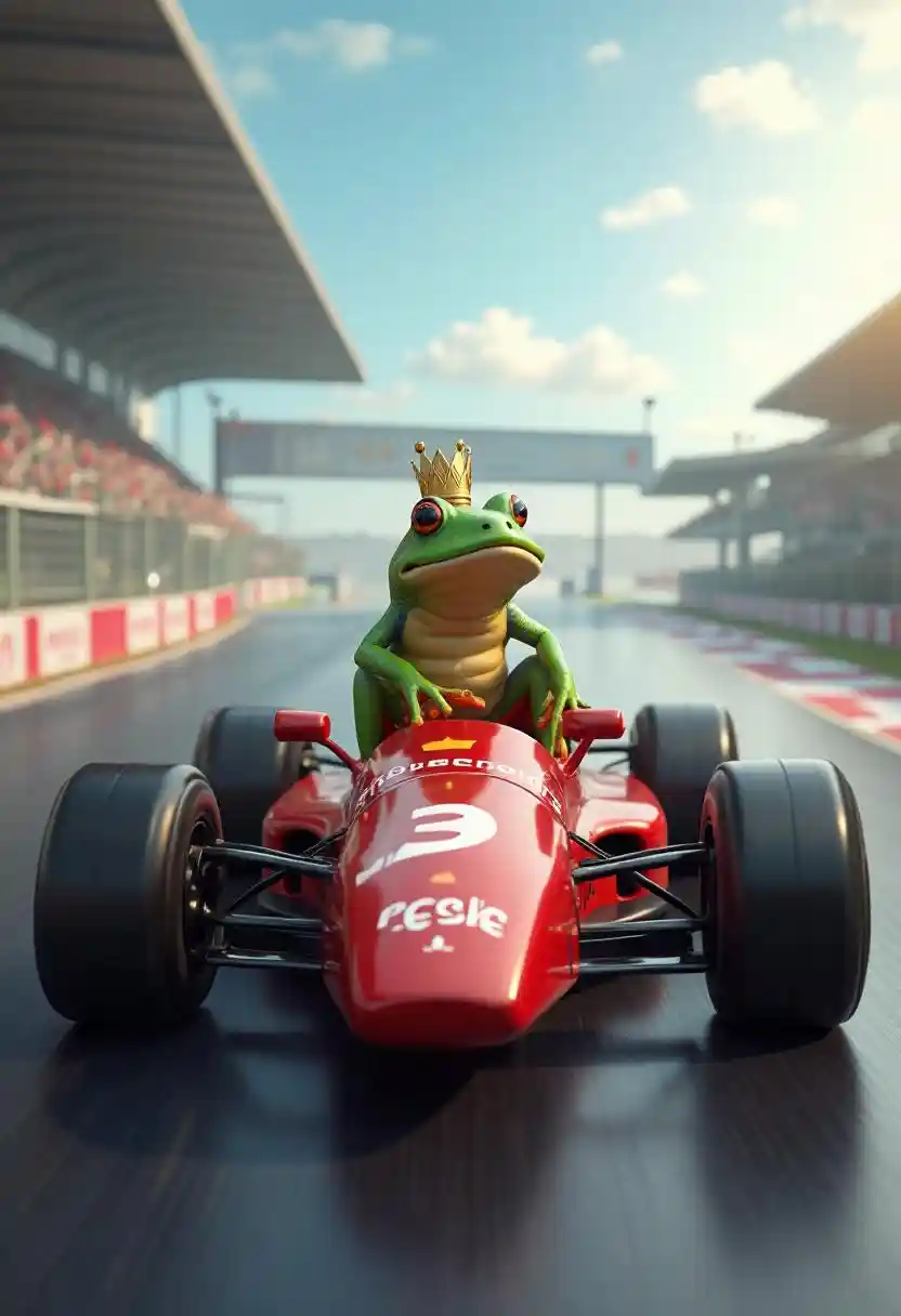 Sammakko F1:n autossa ja kilpailija