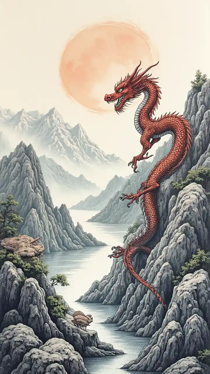 rubylynJapanin kaiverrukset, luonto, vuoret, lohikäärmeet