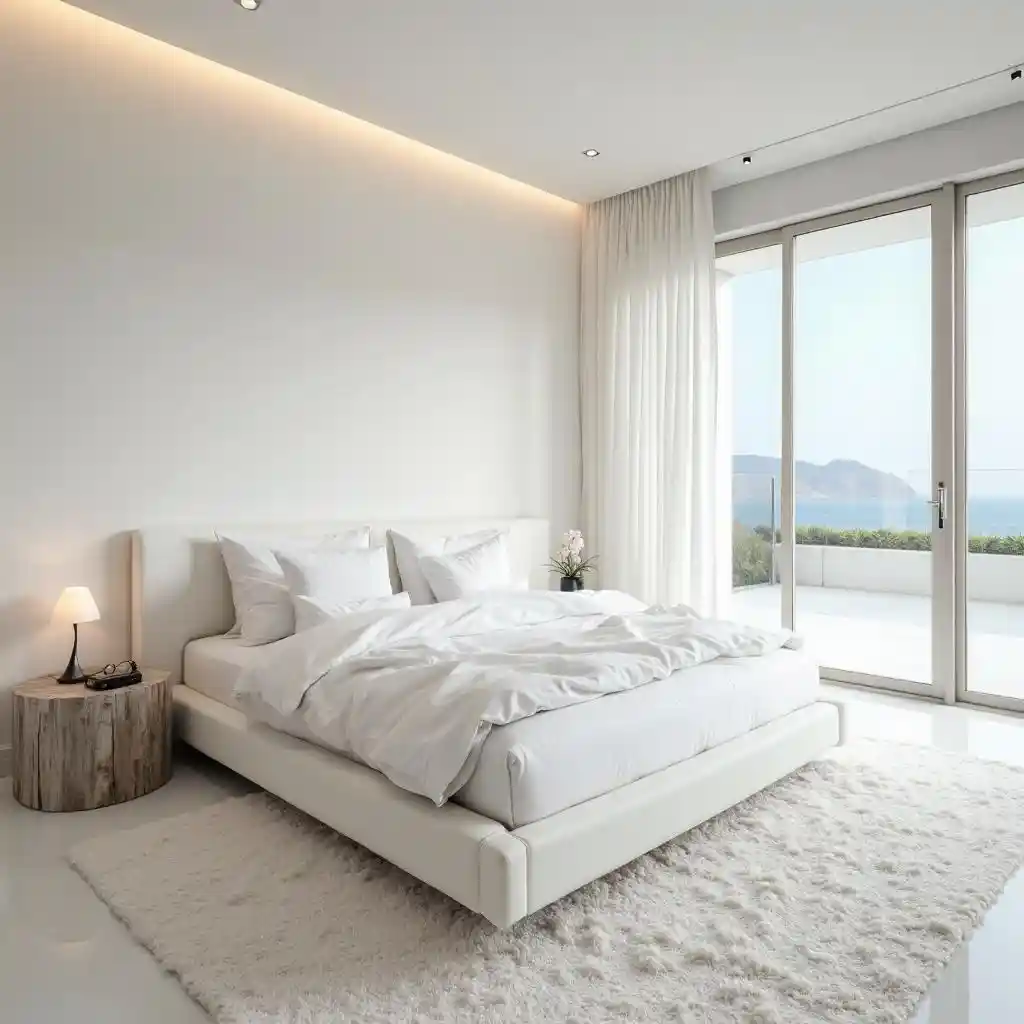 - Hyvä on, Ada İşte İngilizce -ohjaus: "Suuren huviston makuuhuone, joka on suunniteltu minimalistiseen ja yleiseen tyyliin. Keskeinen on iso, erittäin mukava, valkoinen sänky, jossa on pehmeitä tyynyjä ja hieno moderni kehystys. Huone on valoisa ja ilmastoittava, sen seinät ovat sileät ja valkoiset, ikkunat ovat suuret, ja siellä on rauhallinen ilmapiiri. Kätet on koristeltu pehmeillä valkoisilla mattoilla, ja koko muotoilu heijastaa tyylikkyyttä, yksinkertaisuutta ja täydellistä rentoutumista". Toivottavasti se auttaa! (Minä olen)