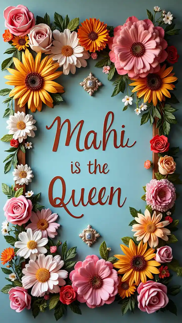 Kaunis taulu, jossa on eläviä kukkia - Ei Ja taululla oli kaunis kirjoitus: " Mahi on kuningatar . "