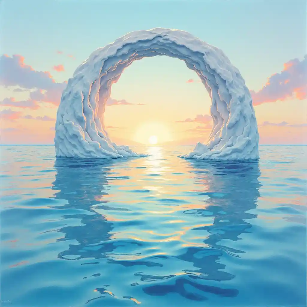 (pehmeällä värillä, elävästi yksityiskohtaisesti) luonnos (kuvaa (taivaa ja vettä) (kaksi yhteen liittyvää ympyrää)), niiden pintojen heijastuvat toisiinsa (elettisesti piirretty horisontti ulottuu yli maan, luoden tunteen äärettömän tilan)) joka ylittää tavallisen, herättää tunteen ja ihmet, ruumiillistaa luonnon äärettömyys